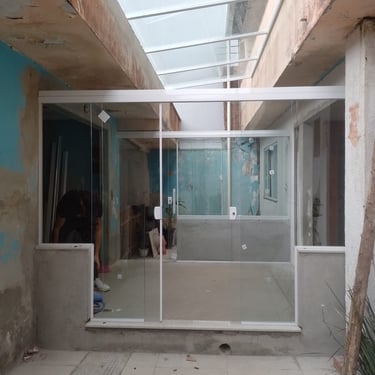 Portas, janelas, Peles e Cortinas de vidro, coberturas de pergolados e mais.